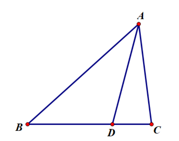 证明:利用正弦定理与面积公式 \(S_{\triangle ABC}=\frac{1}{2}ab\sin C\) 得: $$ \dfrac{S_{\triangle ABD}}{S_{\triangle ADC}}=\dfrac{\frac12 BD\times c\sin B}{\frac12 DC\times b\sin C}=\dfrac{BD}{DC}, $$ 得证.